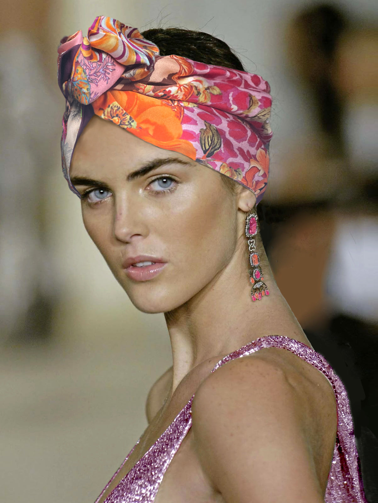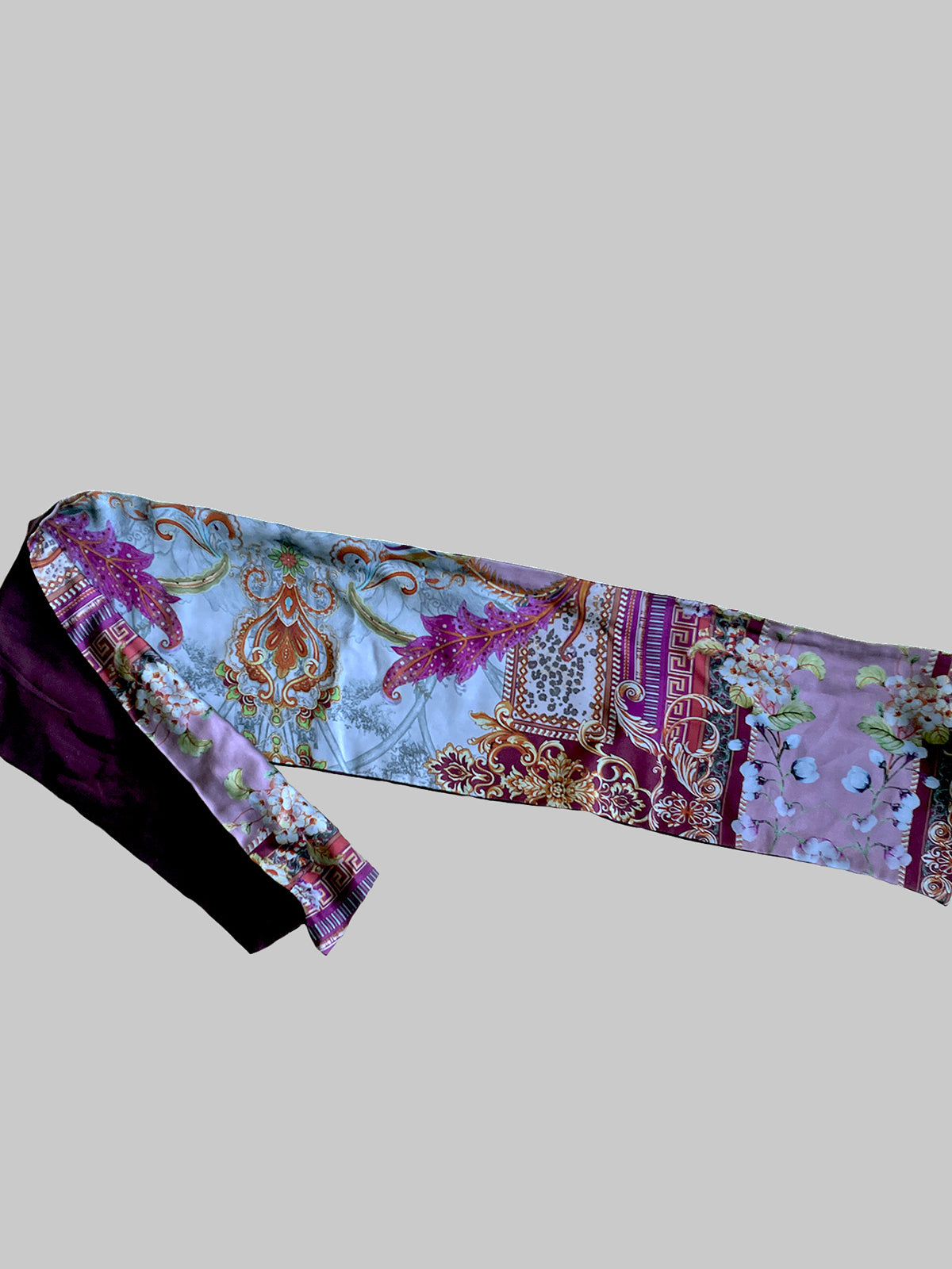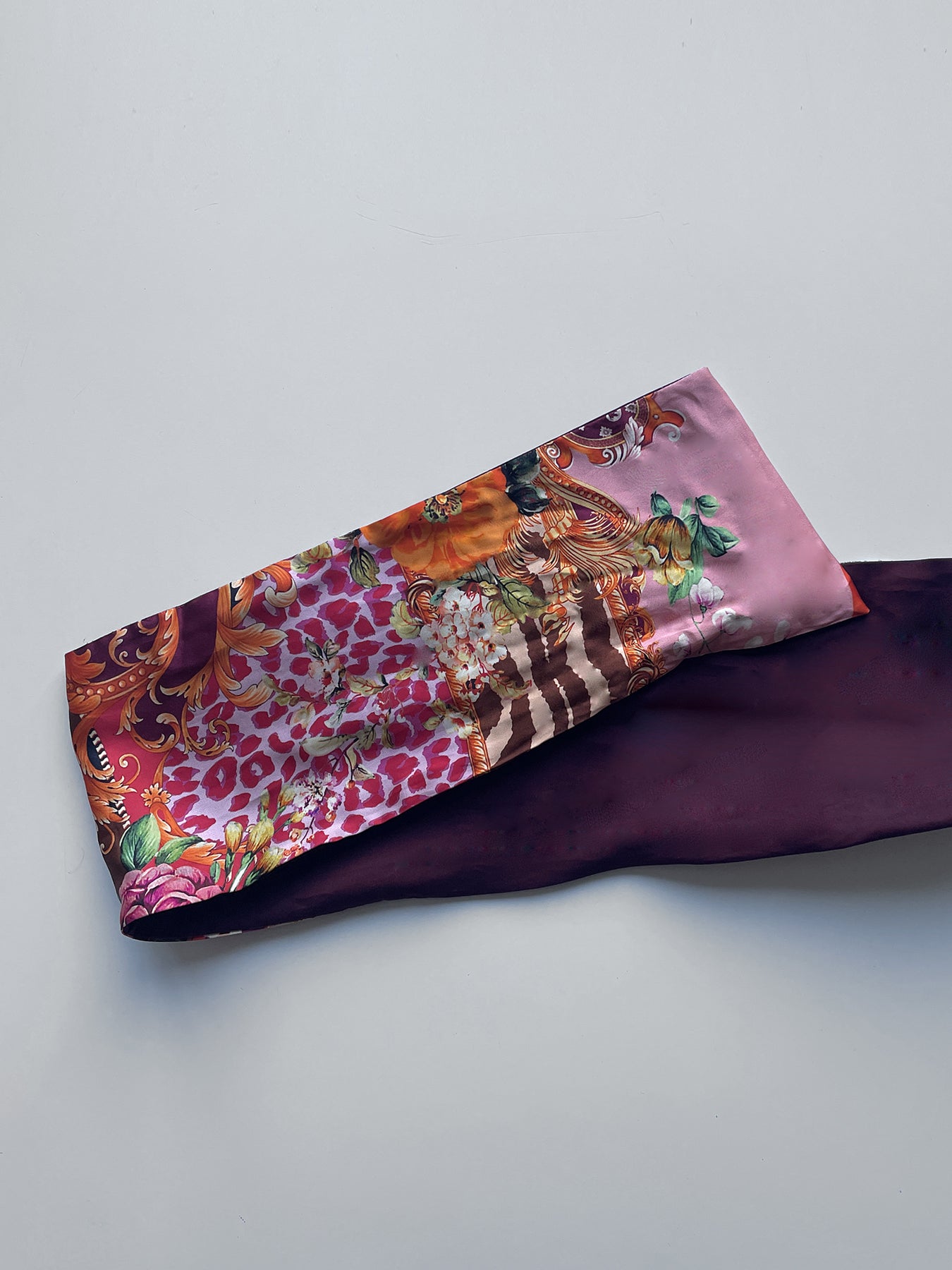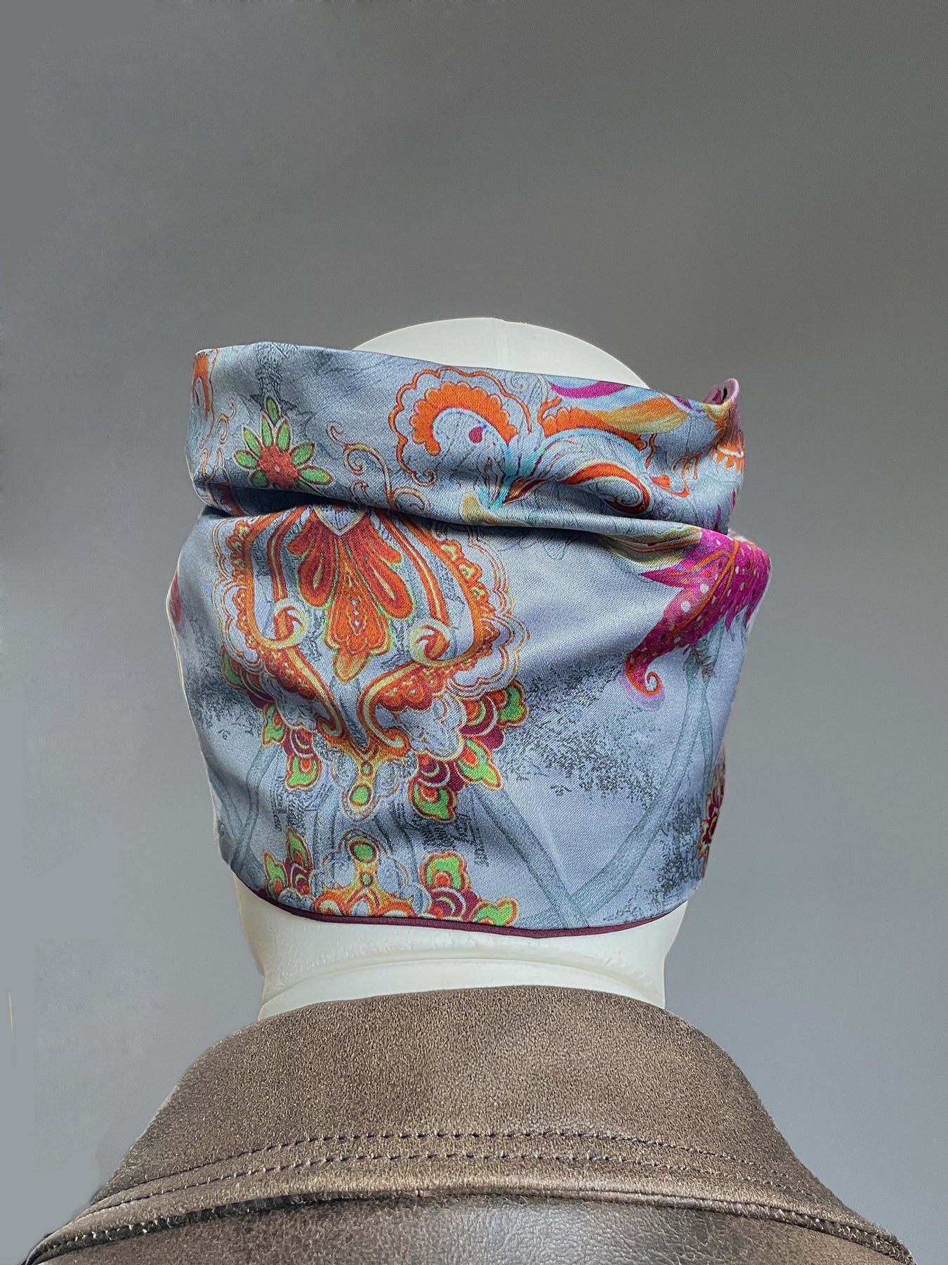 Alta fascia per capelli che crea un look affascinante ed esotico! Double face ha due lati diversi: uno jacquard con disegno geometrico nero, grigio, bianco e beige e l'altro in jersey di viscosa nero, nella parte alta ha un filo modellabile per creare con i lembi varie forme, si può indossare da entrambi i lati in maniera divertente e sbarazzina oppure chic e sofisticata! Impossibile da ignorare!!